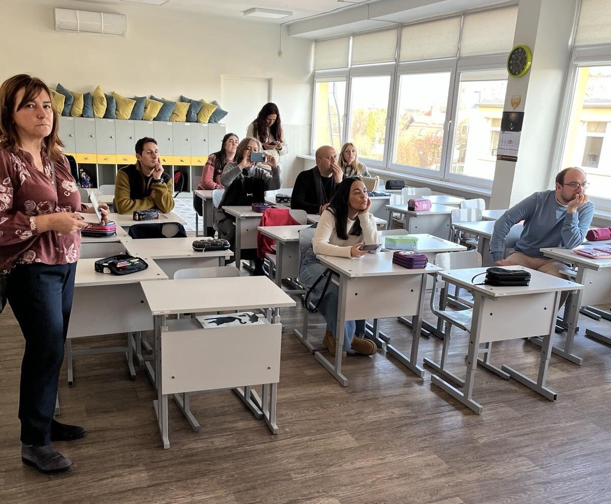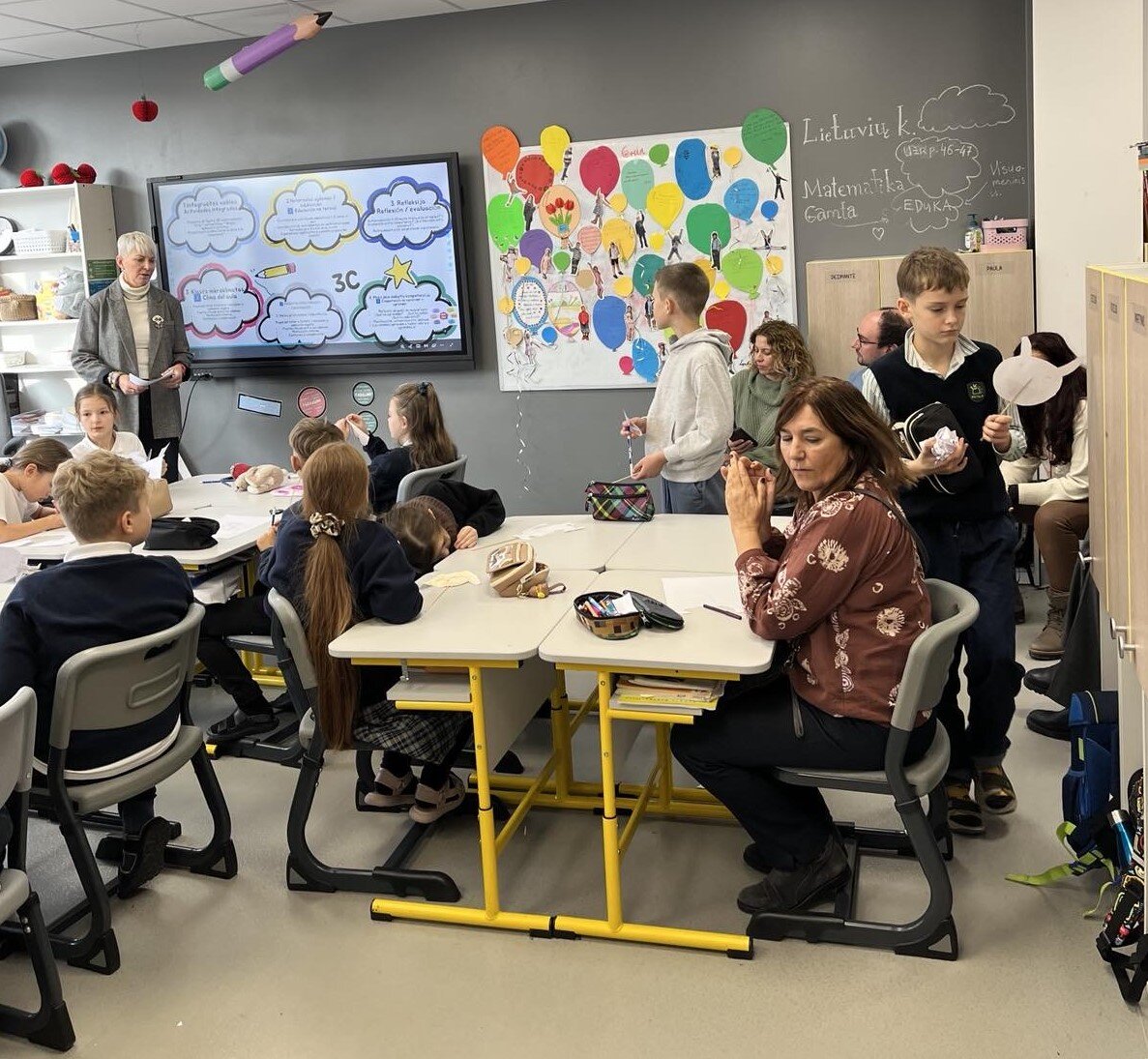 Su švietimo darbuotojų delegacija iš Ispanijos pasidalinome savo patirtimi, metodikomis, parodėme mokymosi aplinkas. Mokiniai turėjo galimybę pademonstruoti savo anglų kalbos gebėjimus, kuriuos labai gerai įvertino delegacijos nariai.