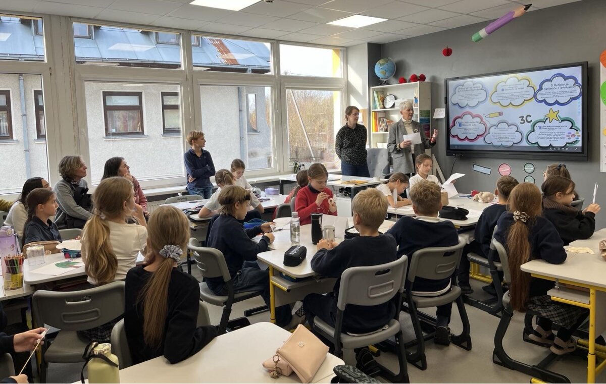 Svečiai stebėjo mokytojų Ritos Žiaukienės, Dalios Dūdaitės ir Zinaidos Vaitulionienės vedamas pamokas. Ispanijos mokyklos direktorius (FC Barselona fanas) net spėjo su vaikais pažaisti futbolą ir pelnyti įvartį. Visus delegacijos narius pradžiugino mūsų mokinio sportiniai marškinėliai su Ispanijos futbolo klubu.