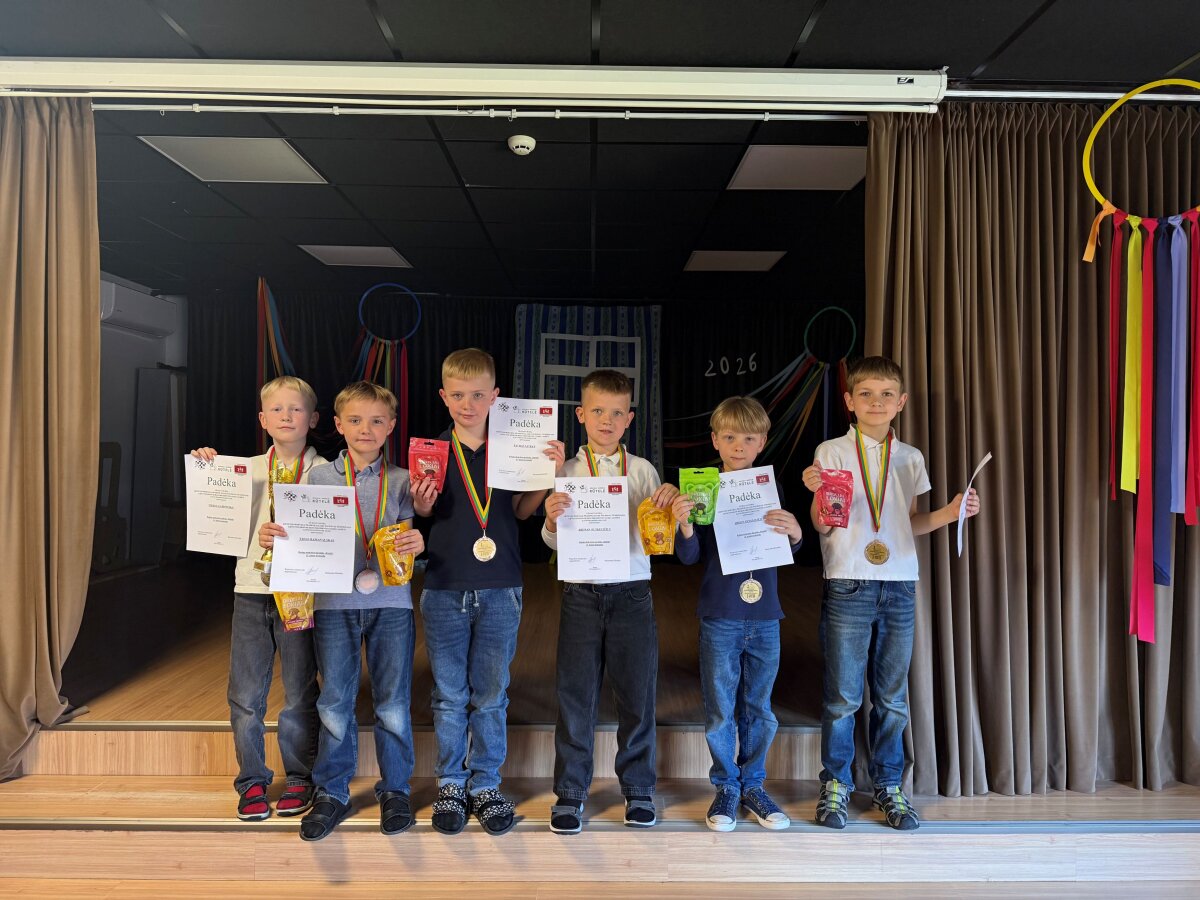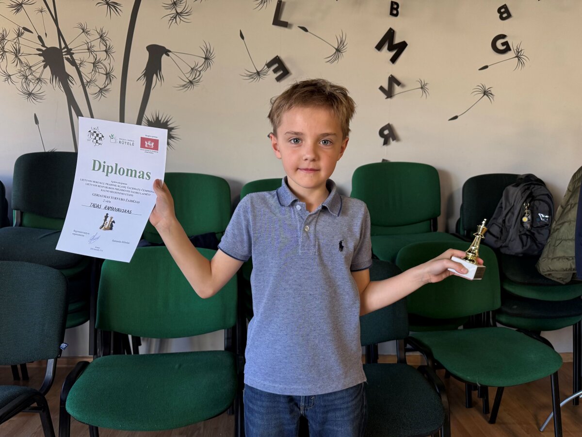 Taip pat labai džiaugiamės mūsų mažiausiaisiais – 1c klasės mokiniais, kurie iškovojo garbingą trečiąją vietą ir puikiai pasirodė turnyre. Ypatingai didžiuojamės pirmoku Tadu Ramanausku, kuris įveikė visus savo varžovus ir tapo geriausiu turnyro žaidėju, surinkęs 4,5 taško!