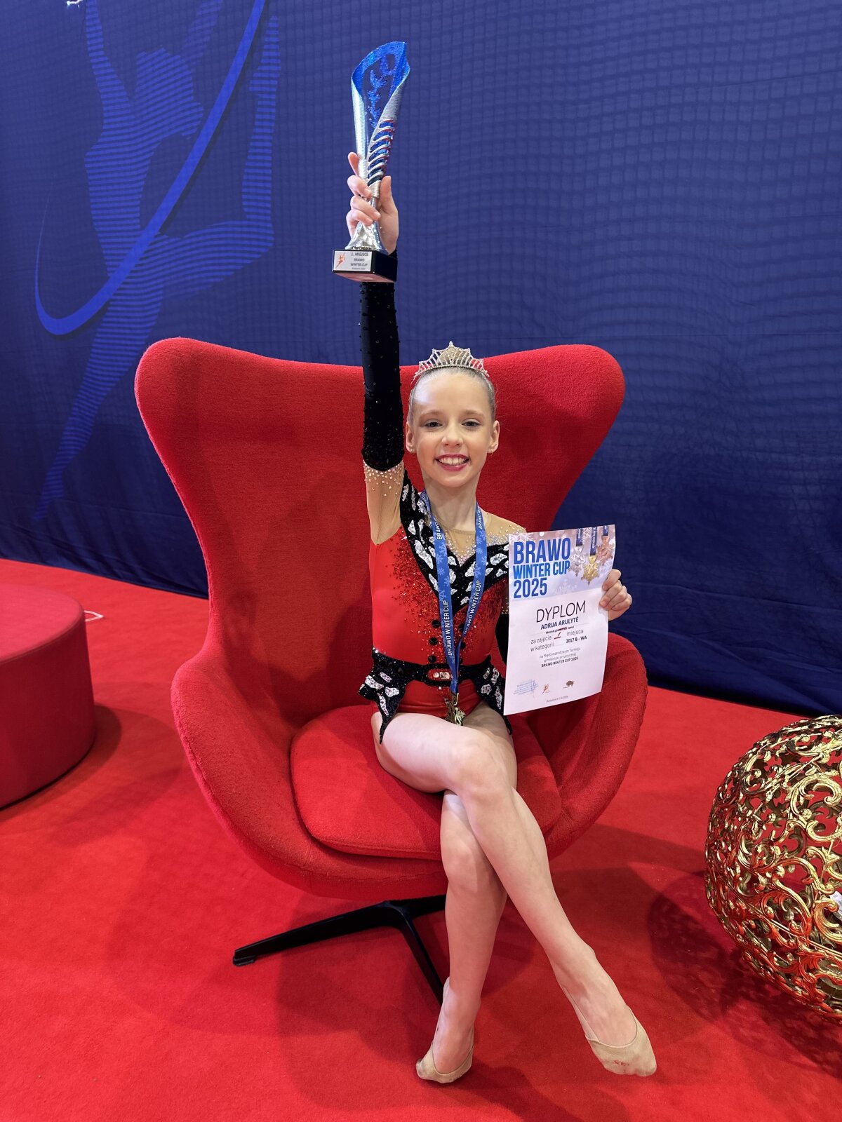 2 B klasės mokinė Adrija Arulytė laimėjo pirmąją vietą meninės gimnastikos varžybose Lenkijoje Brawo cup 2025, 2017 m. kategorijoje.
