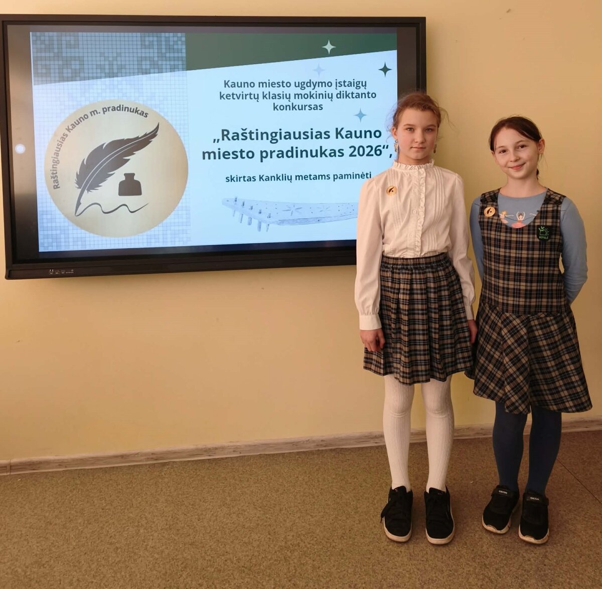 Raštingiausias Kauno miesto pradinukas 2026 4c klasės mokinė Ieva Nedzelskytė ir 4b Viktorija Vėžytė.