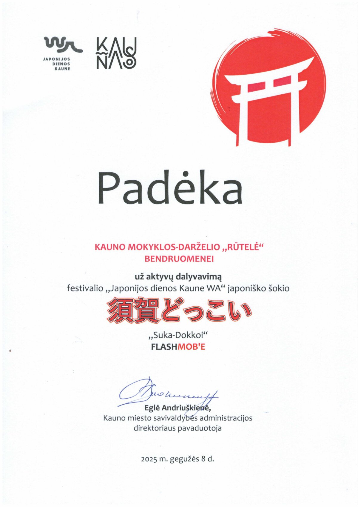 Gegužės 8 d. BLC verslo centre įvyko Kauno miesto mokinių kūrybinių darbų „Tanabata festivalis“ parodos atidarymas, kuris simbolizavo festivalio „Japonijos dienos Kaune WA 2025“ oficialią pradžią. „Tanabata festivalis“ tai Hiracukos miesto atgimimo festivalis, tradicinis japonų festivalis, kasmet švenčiamas liepos 7-ąją. Pati šventė yra kilusi iš kinų folklorinės meilės istorijos „Audėja ir piemuo“. Šiame festivalyje dalyvavo ir mūsų mokyklos mokiniai.