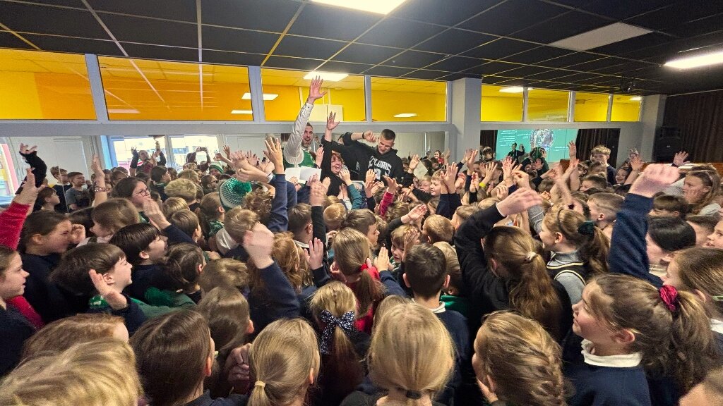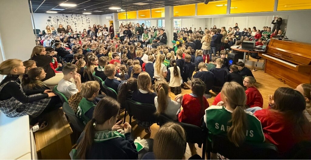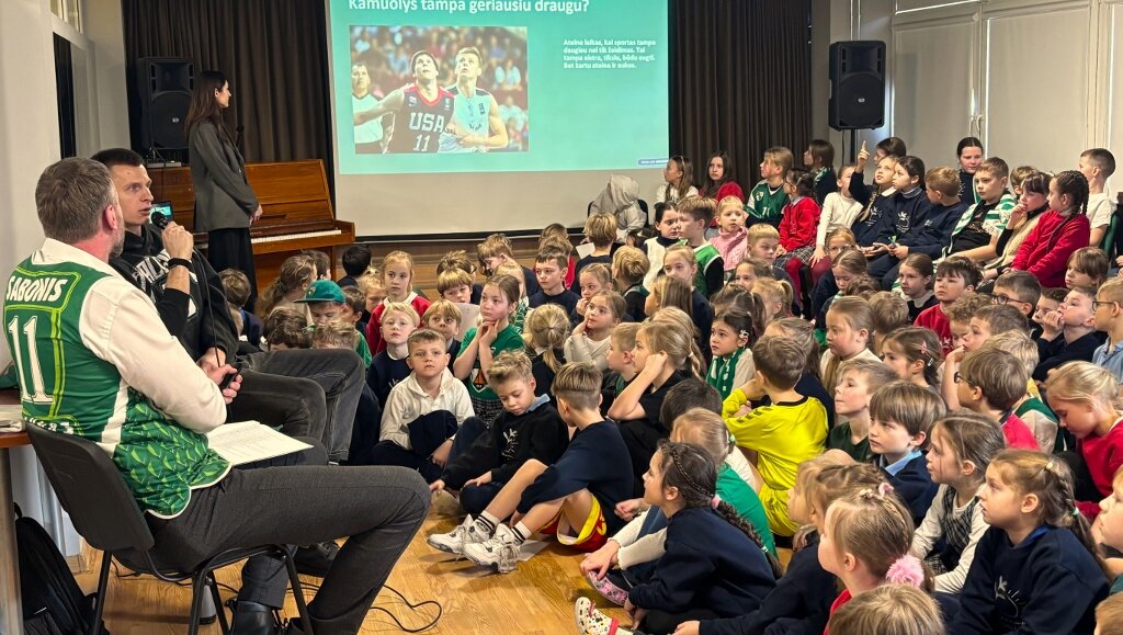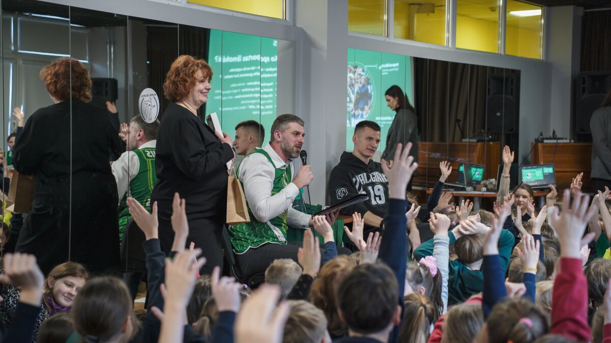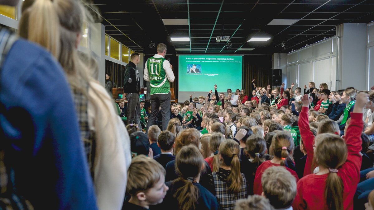 Susitikimas vyko dialogo forma – mokiniai aktyviai kėlė rankas, drąsiai uždavinėjo klausimus apie treniruotes, rungtynes, emocijas aikštelėje bei kasdienę sportininko rutiną. Salėje netrūko juoko, nuostabos ir nuoširdaus džiaugsmo, o bendros akimirkos tapo tikra švente visai mokyklos bendruomenei.
