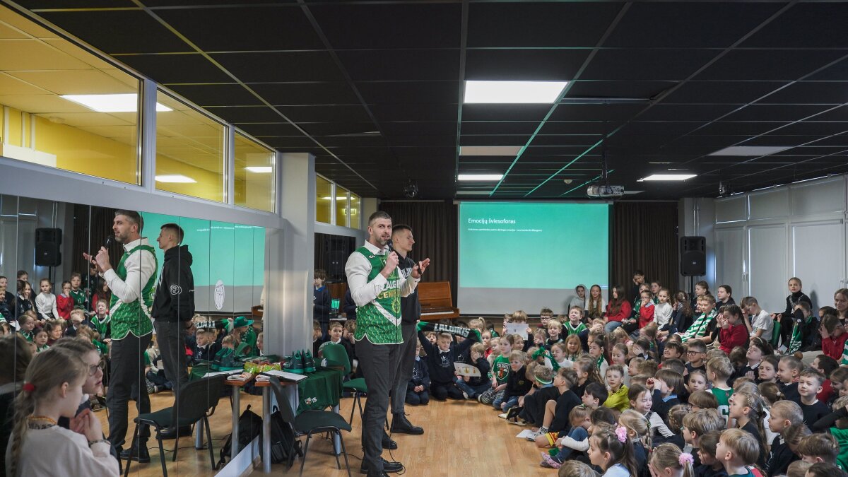Renginio pabaigoje mokinius pradžiugino ir „Žalgirio“ atributika – mokykloje liko pasirašyti marškinėliai ir krepšinio kamuolys, kurie taps šio ypatingo susitikimo atminimu ir įkvėpimu ateičiai.