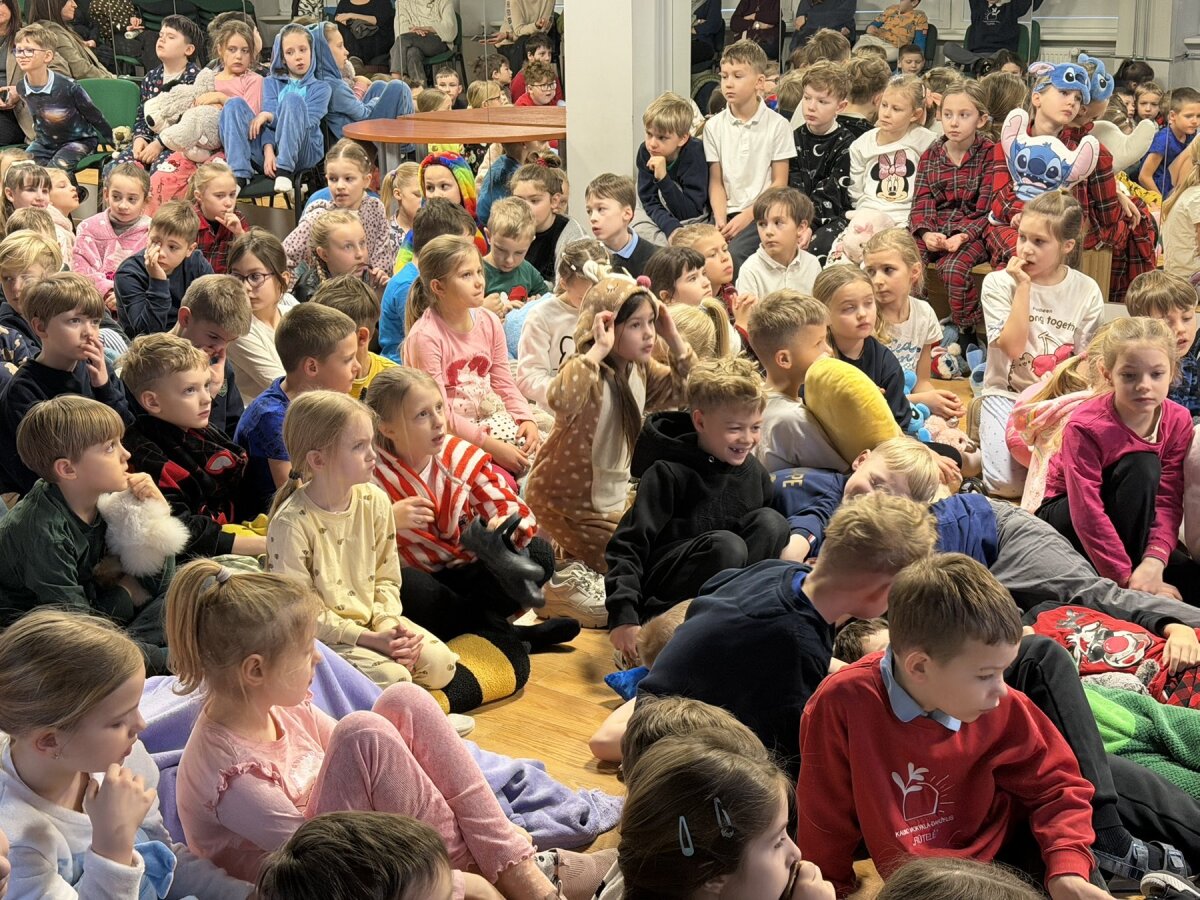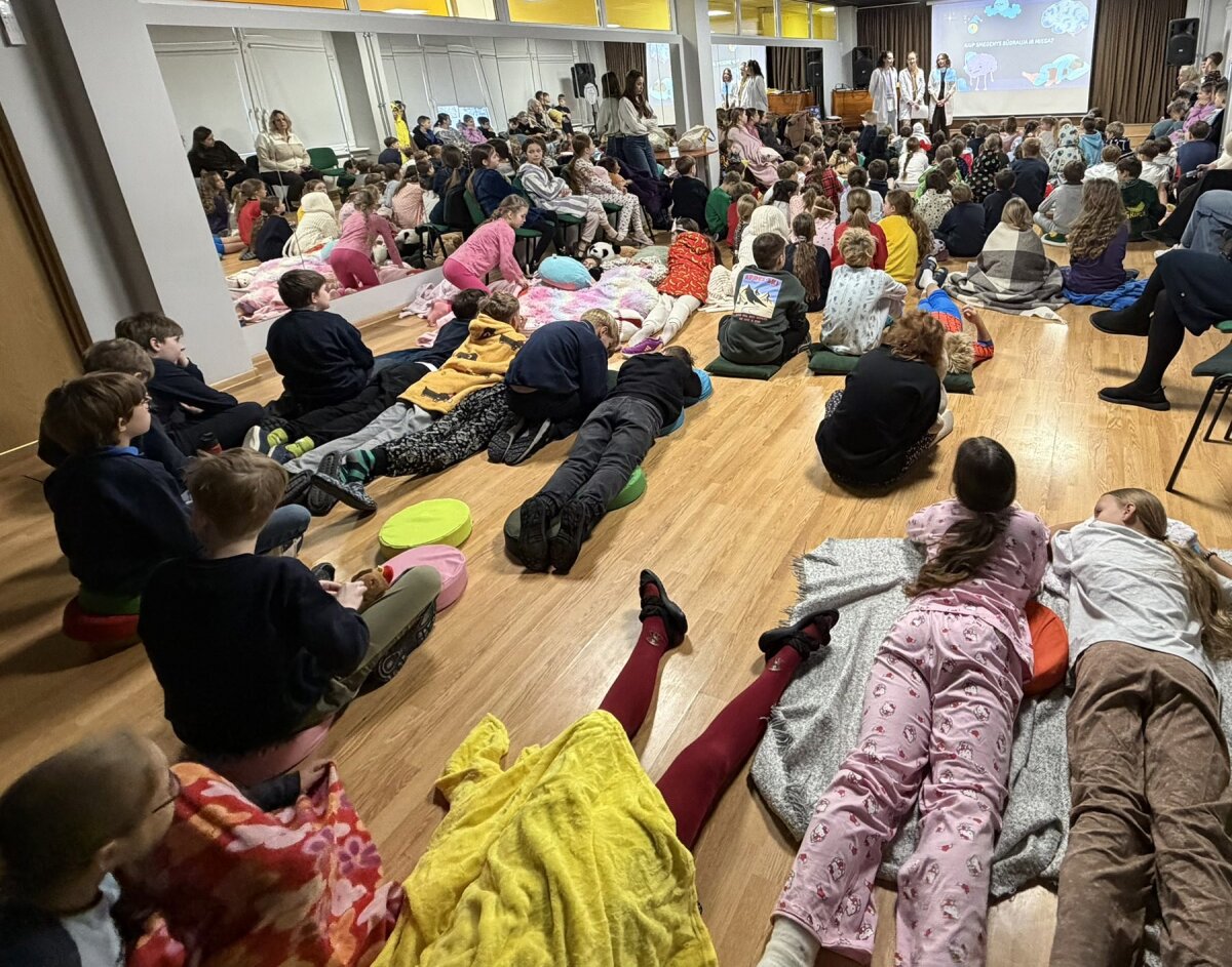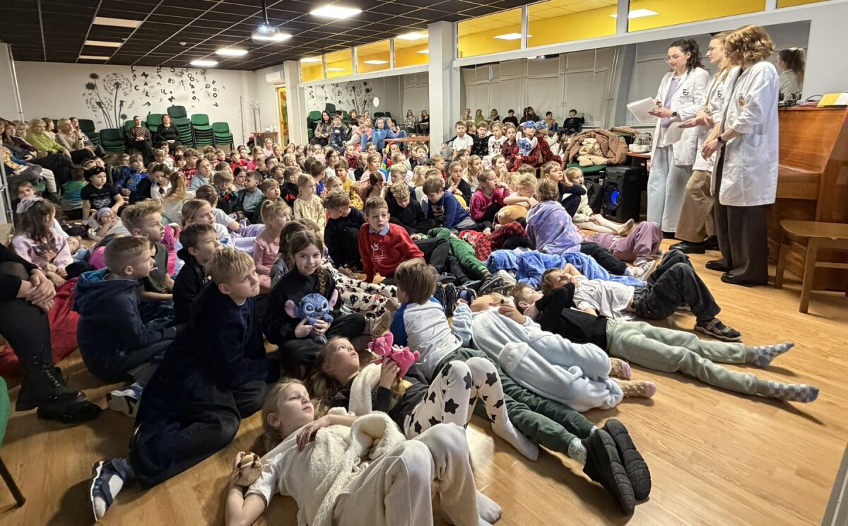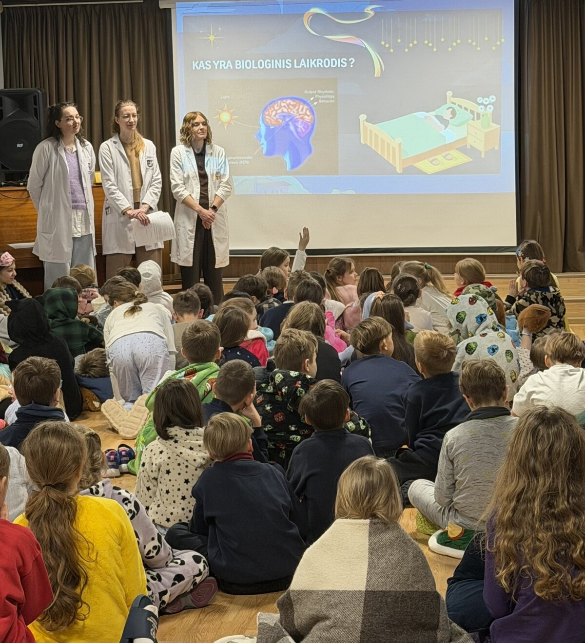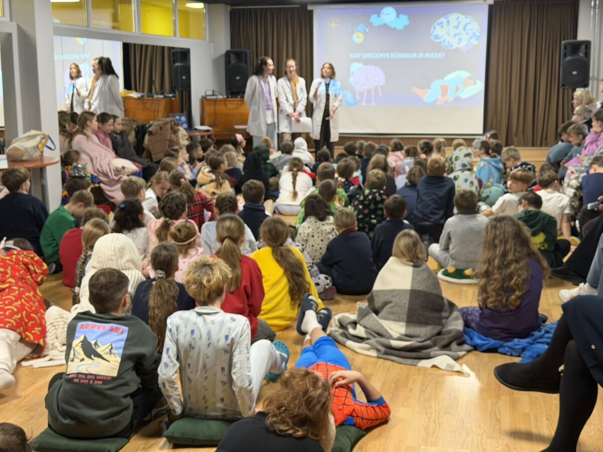 Mūsų mokykloje vyko ypatinga paskaita apie miego svarbą ir miego higieną. Su miego higiena mus supažindino 3c klasės mokinio Gustavo mama Evelina Pajėdienė. Kuri yra miego specialistė, neurologė, medicinos gydytoja. Jai talkino medicinos studentės Ugnė ir Gabija. Šia proga visi mokiniai galėjo ateiti apsirengę pižamomis! Mokykloje tvyrojo jauki atmosfera, o neįprasta apranga padėjo dar labiau įsijausti į temą – juk kalbėjome apie miegą.