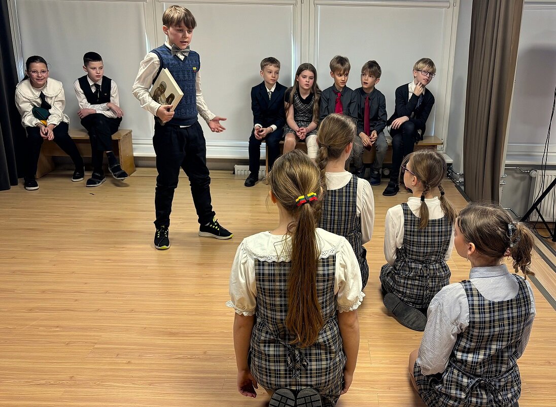 Ketvirtokai surengė visai mokyklai ypatingą šventę – sukūrė ir pristatė spektaklį apie Vasario 16-ąją, Lietuvos nepriklausomybės atkūrimą. Tai buvo ne tik meninis pasirodymas, bet ir brandus, jautrus istorijos suvokimas.